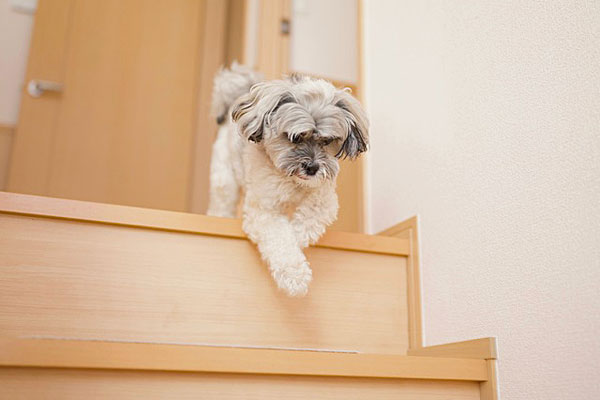 歩行時に、フローリングで滑っていないか見てあげてください。食事や水を飲む器の高さが、体に合っているか確認してあげてください。生活環境を整えることは、無用のケガや病気の予防になります。日常生活の基本動作で何らかの不自由がみられるようになったら、何が問題かを考えて生活改善のサポートをしてあげてください。認知症による徘徊などが、始まる場合もあります。室内をグルグル歩き回る行動が増えた場合は、広いサークルを用意して部屋の角はスポンジシートや柔らかいマットなどの素材で覆いケガをしないようにしてください。階段やソファーの昇降の際、落下して骨折するケースもあります。階段は使えないようにバリケードをし、ソファーは補助スロープを設置する必要があるかも知れません。